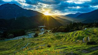 今日の太陽は力がありました。散在する雲を染めて、決して美しくはないけれど、棚田を染め上げます。 八木規雄