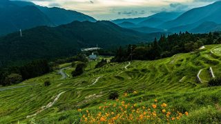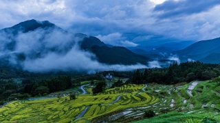 何だかハーフアンドハーフみたいな棚田になりましたね!空に絵文字のサービス付きです。