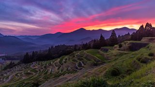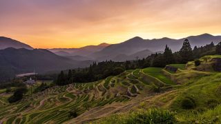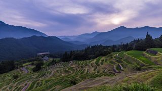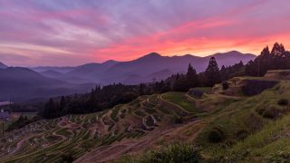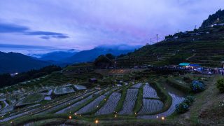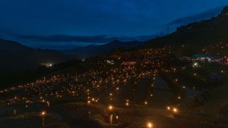コロナの影響で3年間中止が続いた丸山千枚田の最大イベントと言っても決して過言ではない「虫送り」行事!小雨のぱらつく生憎の天気ではあったが、結構な数の観客であった!ほんの一瞬ではあったが、夕焼けもほくそ笑むかのような風情で …