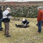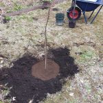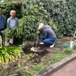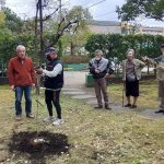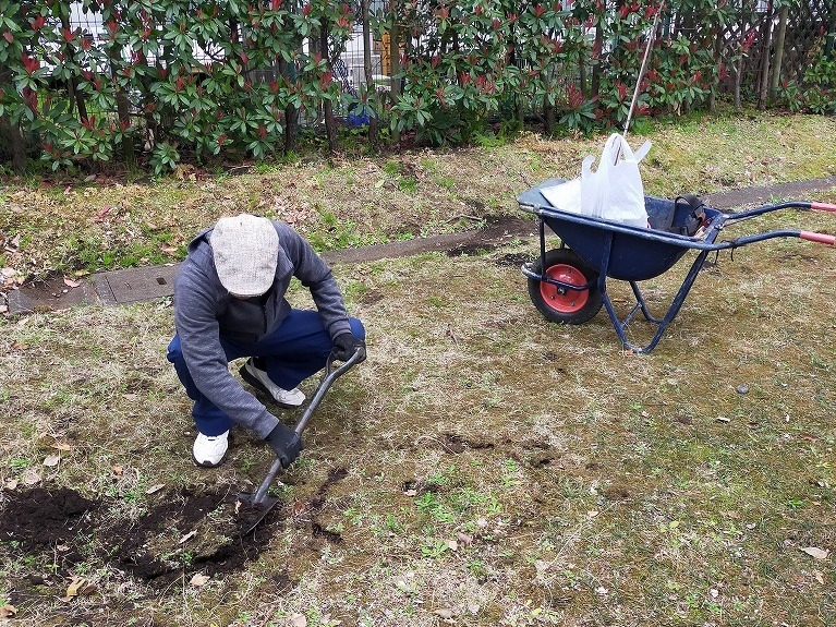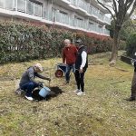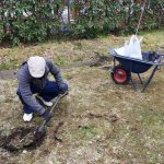 かねてより、ハイム敷地内でクマノザクラを見たいとの希望を温めてきたグループが、21日朝、緑の環境委員会の協力のもと、苗木2本を植樹しました。場所は、予め、緑の環境委員会にて検討され決めていただいた、2号棟南側の中ほど、及び3号棟西側のプレイロット近くの2か所です。