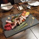 店名は「KAIHAMI CARNE」。「CARNE」はイタリア語で肉だから主に肉を食べさせる店だろうと思った。「KAIHAMI」は何だろうと後で調べてみたら、店主(シェフ)の苗字で貝岐(かいはみ)さんだそう。珍しい苗字だ。