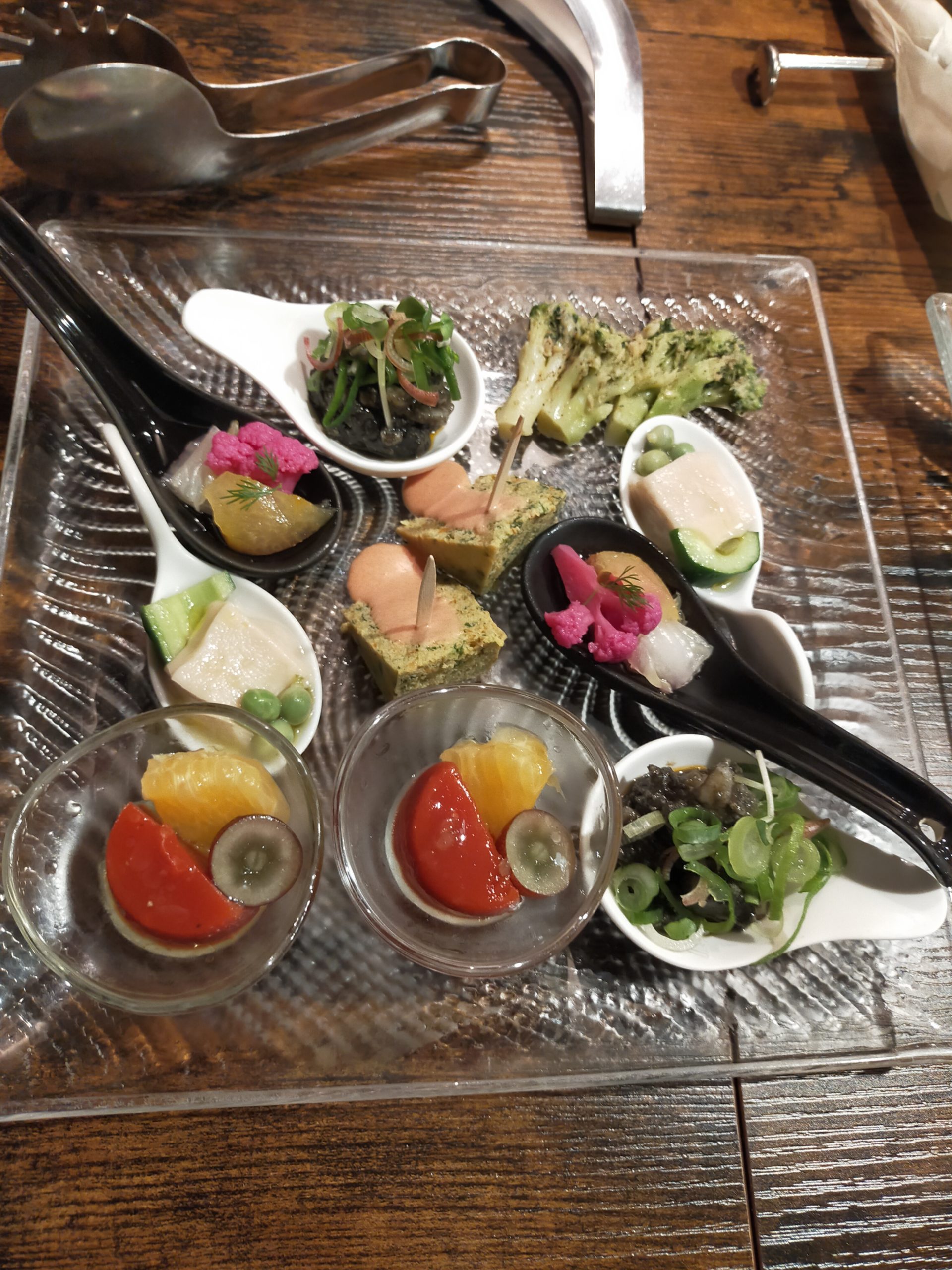 店名は「KAIHAMI CARNE」。「CARNE」はイタリア語で肉だから主に肉を食べさせる店だろうと思った。「KAIHAMI」は何だろうと後で調べてみたら、店主(シェフ)の苗字で貝岐(かいはみ)さんだそう。珍しい苗字だ。
