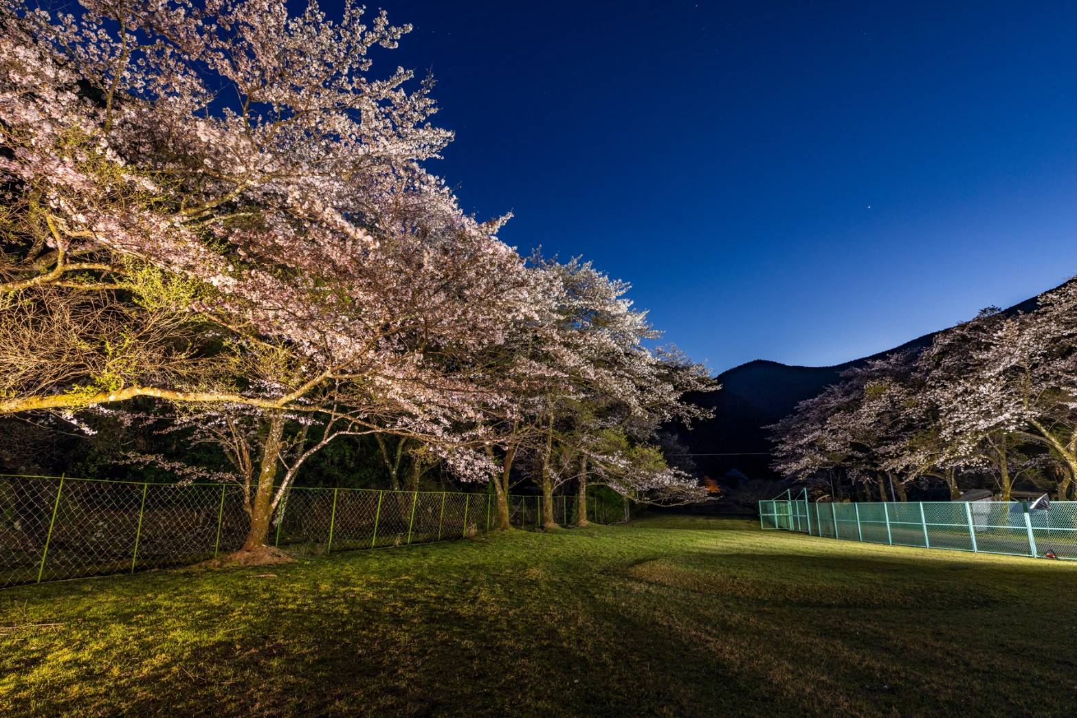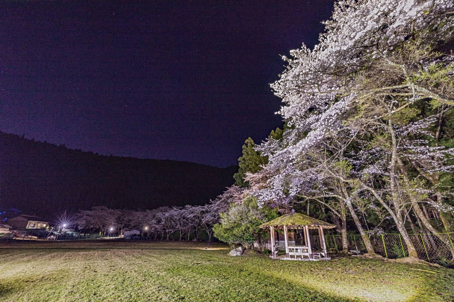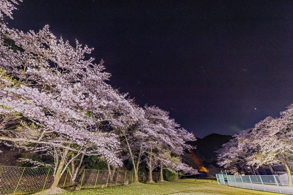1日の小森ダム近辺の公園のソメイヨシノです。 自前のライトアップで夜桜ですが、星が綺麗でした。
