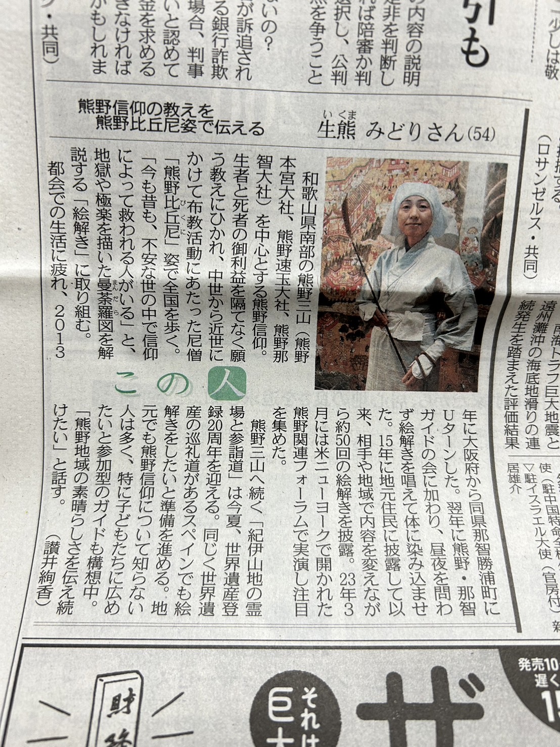 学生時代の友人が熊野比丘尼についての記事を送ってくれたので紹介します。生熊という変わった苗字の友人で、ひょっとしたらこの比丘尼さんは親戚かもと言っています。