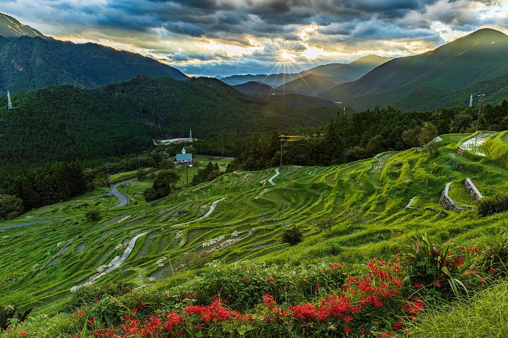 稲刈りが終了した頃、土手に彼岸花が咲き乱れます。いい被写体になりますし、夕焼けと重ねて撮りたくなりますね!