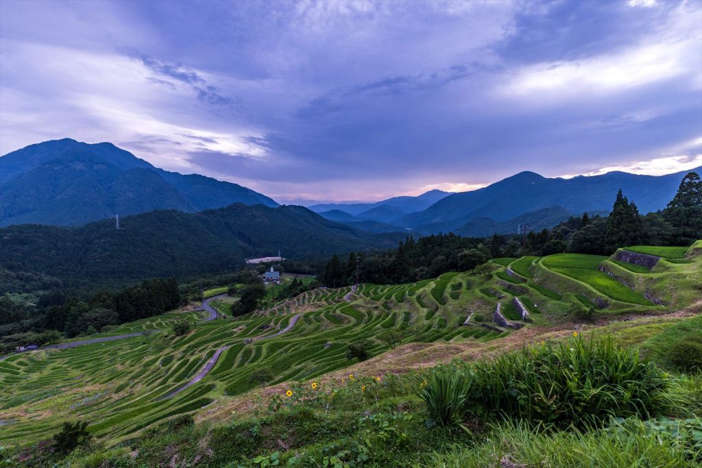 どうやら、黒い雲は切れそうだが・・・?目ざとい方なら、もうお気づきでしょうが、写真一番奥に位置する稜線にご注目下さい!前の写真には無い、稜線が一つ多く写っていませんか? そうです!千枚田の蜃気楼です。これを期待して、望遠をセットしていたのですが、雨に濡れるのが嫌なので撤収した後でした。残念!でも、ラッキー!