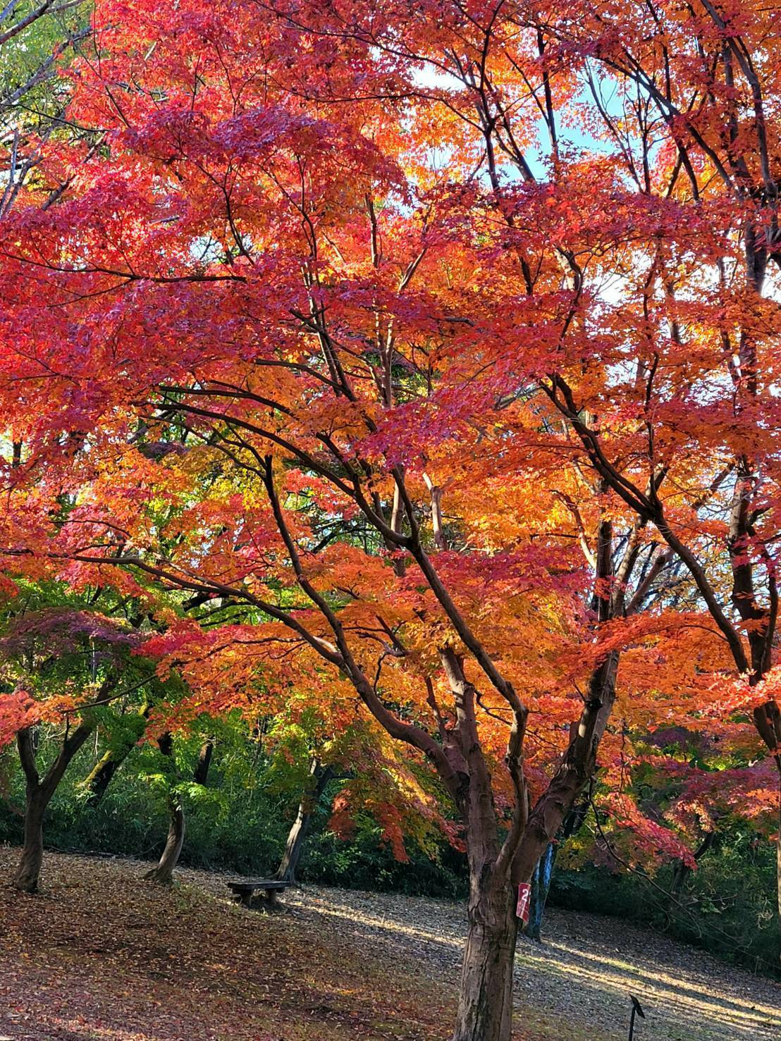 ここには、30本くらいのモミジの木が植えられていて、小さな公園のようになっています。ちょっと分かりづらい場所なので、人が少なく穴場です。(休憩用のベンチもあり)