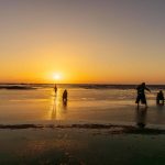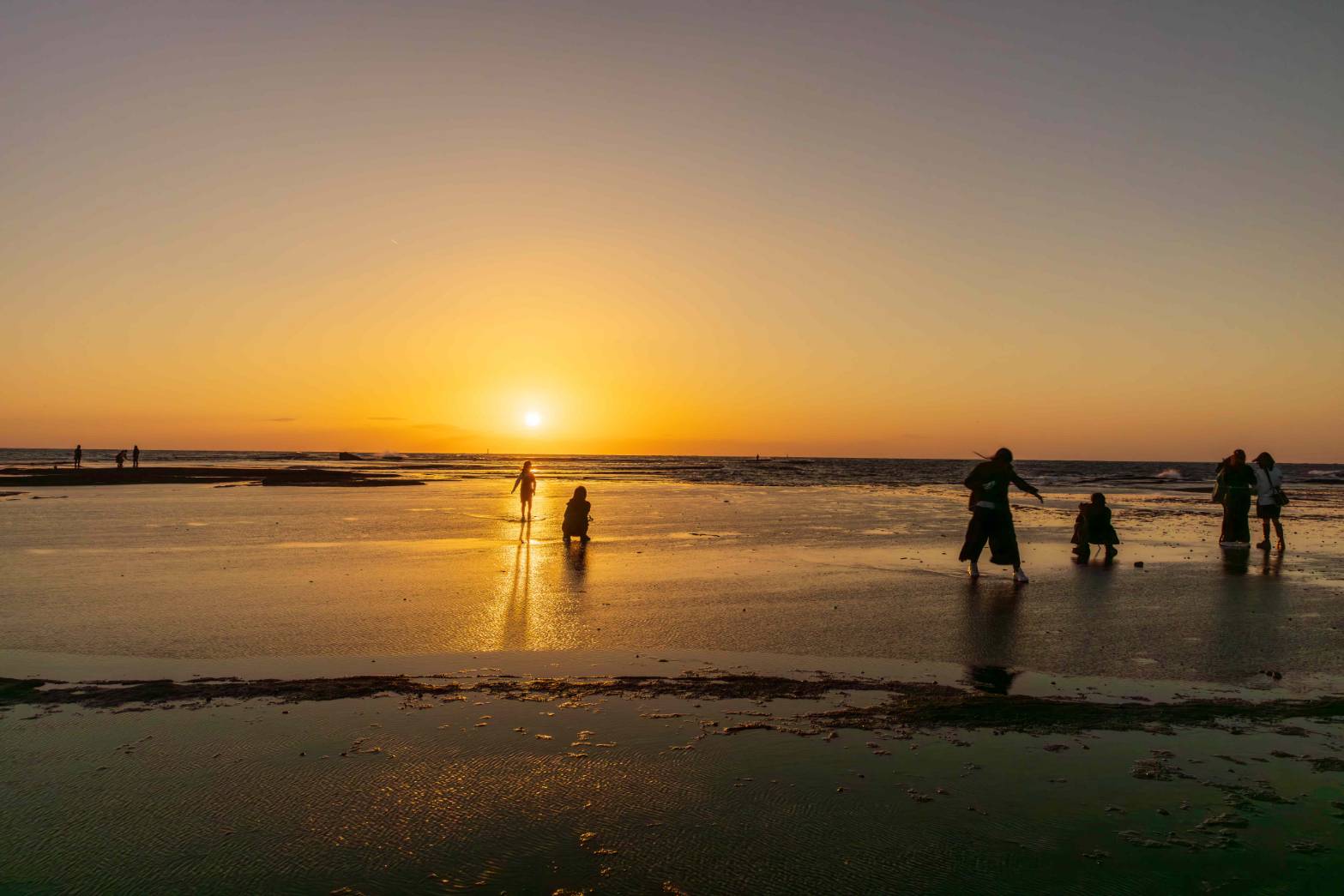 家内を案内しての天神崎再訪です‼️風が強くて鏡のような反射には為らなかったけど、風のお陰で夕日の道が金の粒子をちりばめたようで、めちゃ綺麗でした。